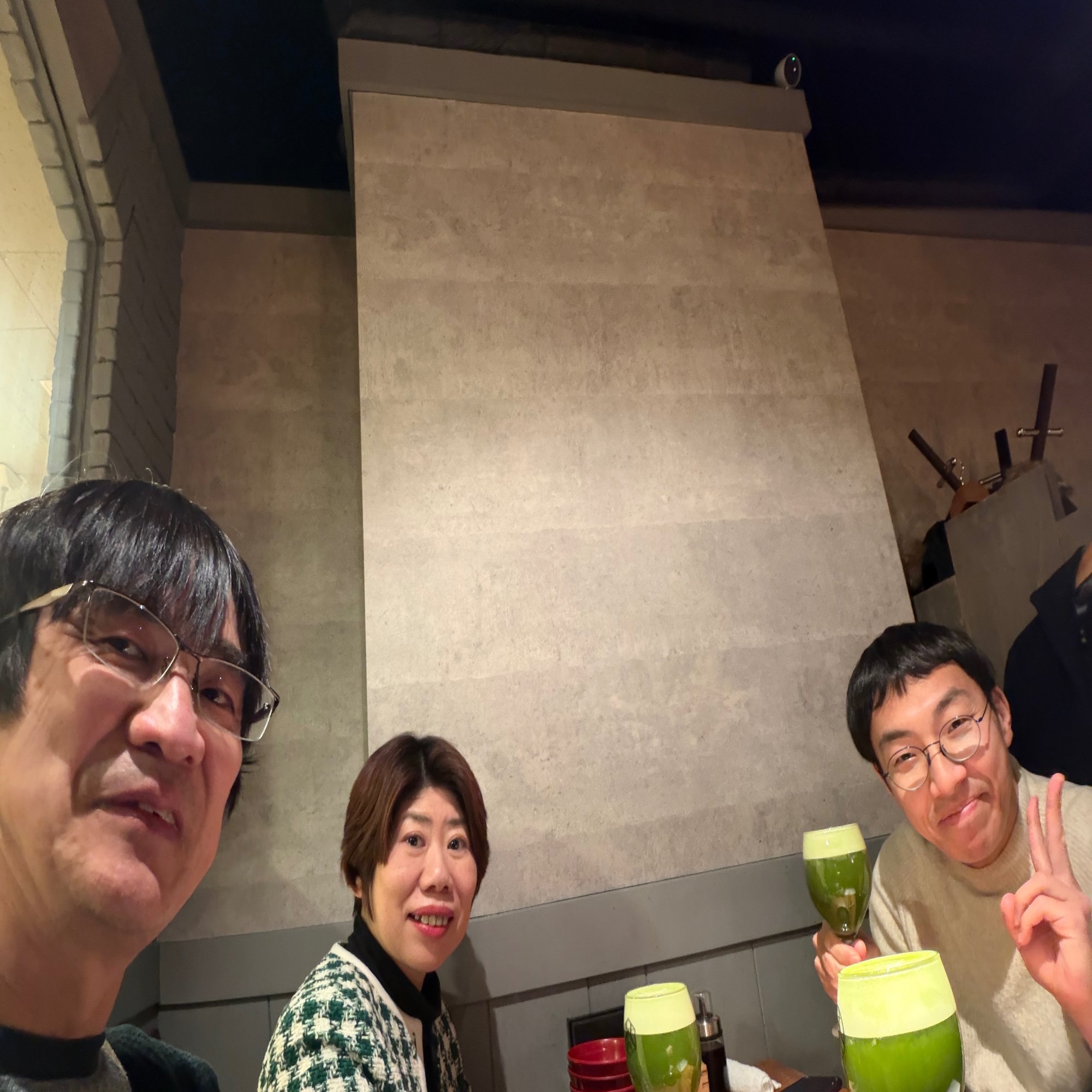 私の人生初の抹茶ビールで乾杯。