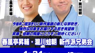 福北寄席 開催情報 2/20(金)札幌福北寄席 春雨や晴太・神田鯉花二人会 fukukitayose / 札幌福北寄席 春雨や晴太・神田鯉花二人会 日時:2026年2月20日(金)18:30開場19:00開演 会場:時計台ホール(札幌市中央区北1西2札幌市時計台2F) 入場料:前売2500円 当日3000円 高校生以下500円 前売チケット:道新プレイガイド お問合せ 03-5909-3080(公益社団法人落語芸術協会) 関連 ABOUT ME fukukitayose 平成30年12月から札幌福北寄席を隔月開催のほか、全道各地で落語会を開催しています。 BLOG:http://youtasnet.com/fukukitayose